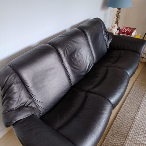 Stressless 3-personers sort lædersofa m vippefunktion.