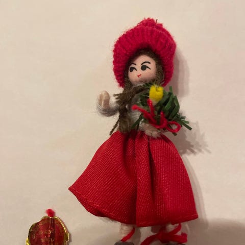 Anne Beate nissepige med æble. Højde 12 cm