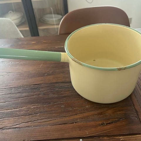 Lille kasserolle med låg og hank , metal+træ, 16cm dia. l.29cm