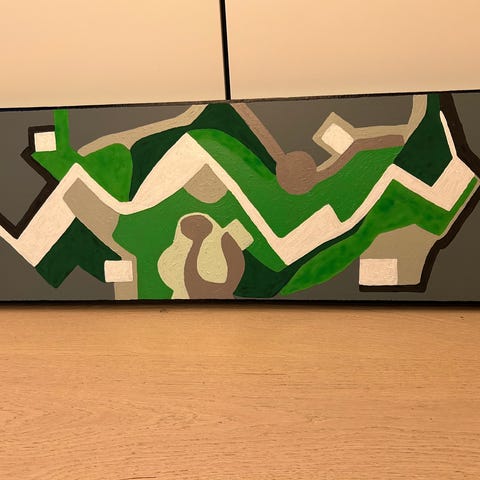 2 unikke håndmalede billeder måler 22 x 28 cm og 34 x 34 cm. Lavet på genbrugsmaterialer. Sælges samlet.