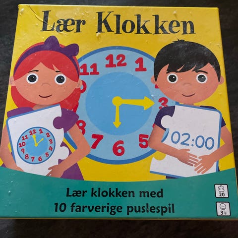 Playland Lær Klokken træspil til børn fra 3 år og op. Spillet består af træbrikker med urskiver og klokkeslæt, designet til at hjælpe børn med at lære at aflæse tiden. Materialet er træ, og spillet leveres i en trææske til opbevaring.