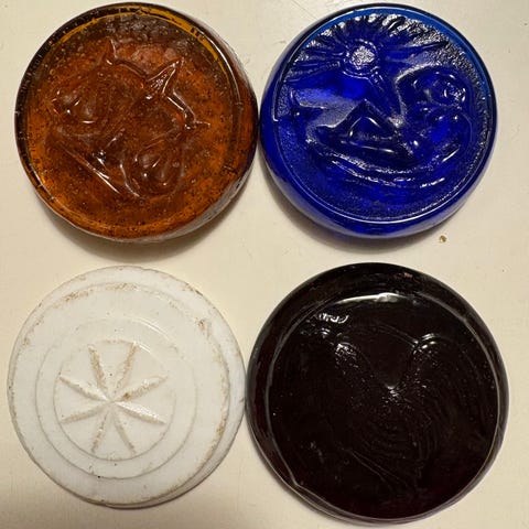 Hinkestenen fremstår ubrugt - uden ridser/skader - den måler 6,0 cm i diameter.