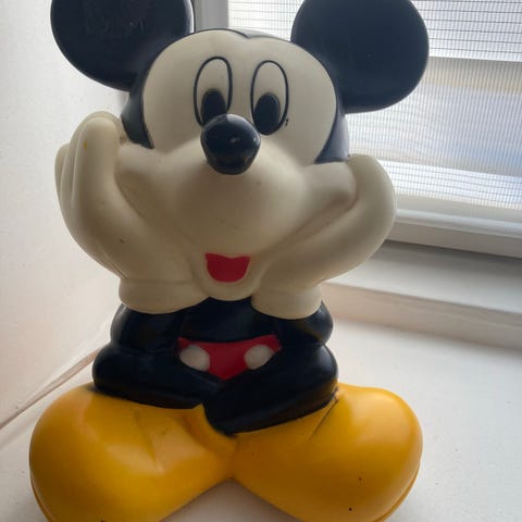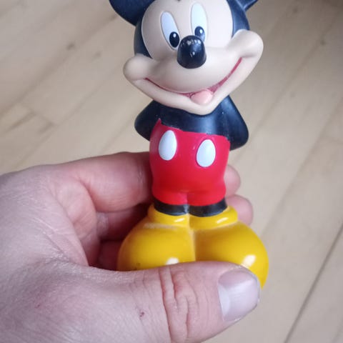 Mickey Mouse figur som også er en shampoo beholder.