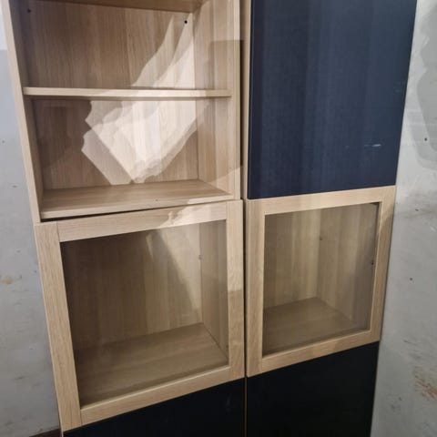 Sælger et BESTÅ-sæt fra IKEA bestående af både skænk og vitrineskabe/vægskabe i sort højglans.
