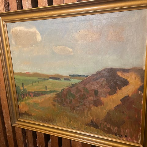 Landskabsmaleri af Carl Ejnar Jacobsen. Viborg i 1948. Olie på lærred.