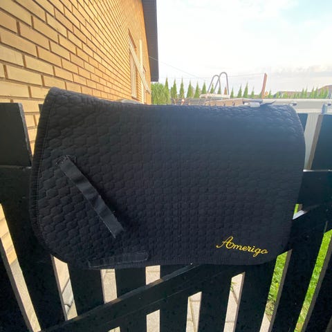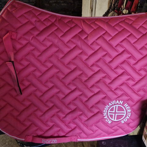 Underlag, Rider by horse hvidt med sølvkant dressur underlag i str. 17. Er brugt få gange