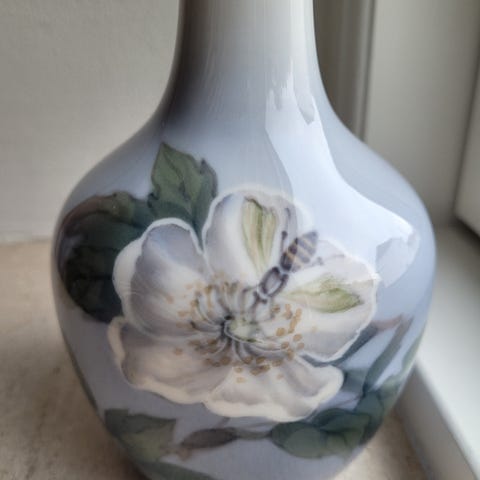 Fin vase fra Royal Copenhagen med motiv af alpevioler