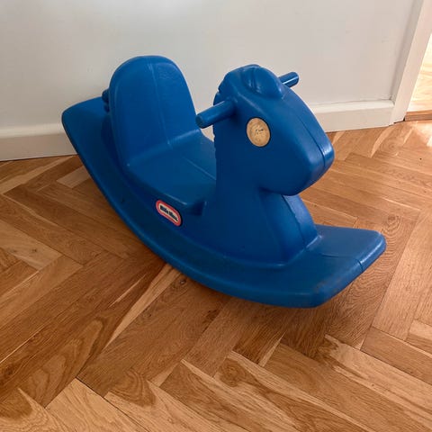 Sælger denne fine gyngehest mærket little tikes , den er i rød plastik med gule håndtag God stabilitet så barnet ikke vælter. Anbefalet fra 1 -3 år.