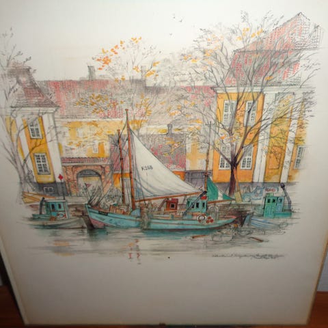rammer, med glas, motiv: Nyhavn, b: 36 h: 30, 2 forgyldte rammer ca 1890 og 1920, det ene med nyere foto fra Nyhavn 17 og kanalen , begge med glas , det andet er skønvirke ramme, 29x33 og 36x30, vurdering 300