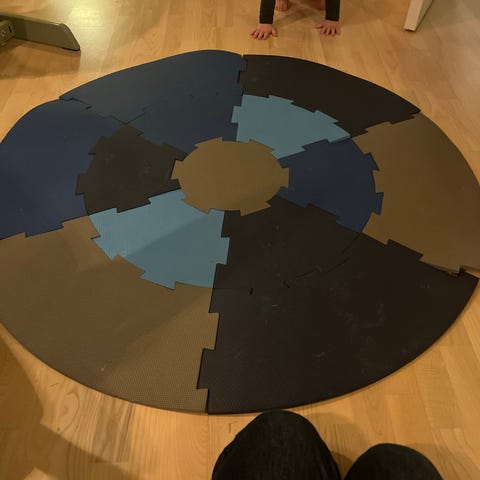 Legegulv til de mindste, samles let og brugt en del til vores drenge. Gulvet har lidt bidemærker efter leg. Mærket er sebra.