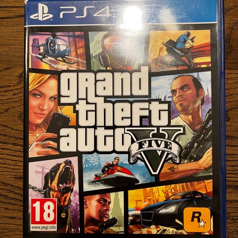 Grand Theft Auto V Playstation 4 spil, Premium Edition, velegnet til Playstation 4 konsol. Spillet har en aldersgrænse på 18 år.