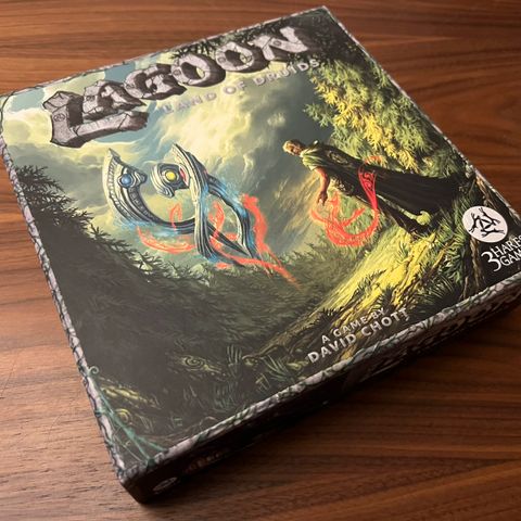 Engelsk. Signeret (til Peter) af både designer og illustrator. Aldrig spillet. Strategisk worker placement-spil, hvor du sender lærlinge ud for at høste magiske ressourcer, bygge templer og vinde gudindens gunst.