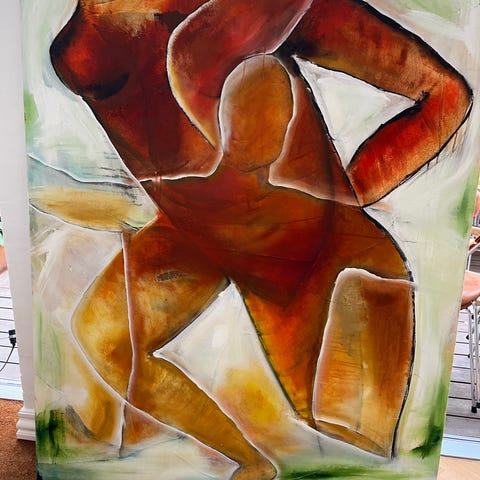Abstrakt maleri med dimensionerne 40x40 cm af kunstner Jung.