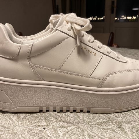 Meget velholdte sneakers (brugt 2 gange) fra Axel Arigato str. 38 i hvid læder m/rosa, lavendel og grå kontrast. Nypris 2350 kr - har original æske og dustbag