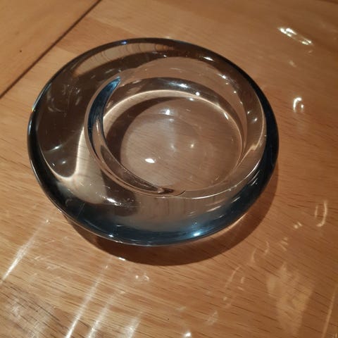 HOLMEGAARD lysestage i klart glas med læder strop.