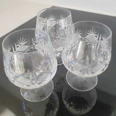Cognacglas blå dråbe 6 stk. 50 kr pr stk sælges samlet 275 kr.
