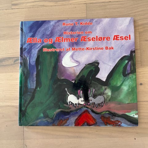 Historien om Ælla og Ælmer Æseløre Æsel, Rune T. Kidde & Mette-Kirstine Bak, Dette er Rune T. Kiddes tekst & Mette-Kirstine Bak tegninger gjort ved Historien om Ælla og Ælmer Æseløre Æsel fra forlaget Modtryk anno 2003