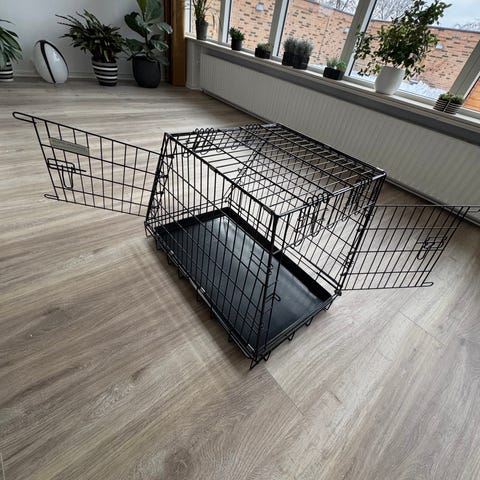 Transportbur som kan klappes sammen, fylder ikke meget når det er foldet sammen