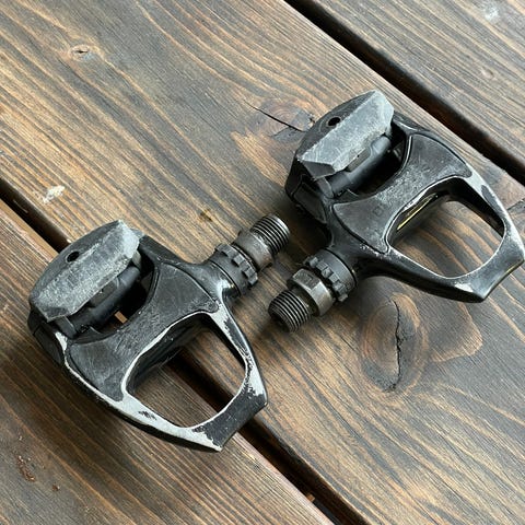 Shimano SPD pedaler til cykel med klikfunktion. Designet til at give effektiv kraftoverførsel og stabilitet under cykling.