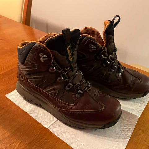 Timberland støvler i størrelse 43 udført i brun ruskind. Støvlerne har snørelukning og polstret krave for komfort. Designet til alsidig brug med robust sål og slidstærkt materiale.