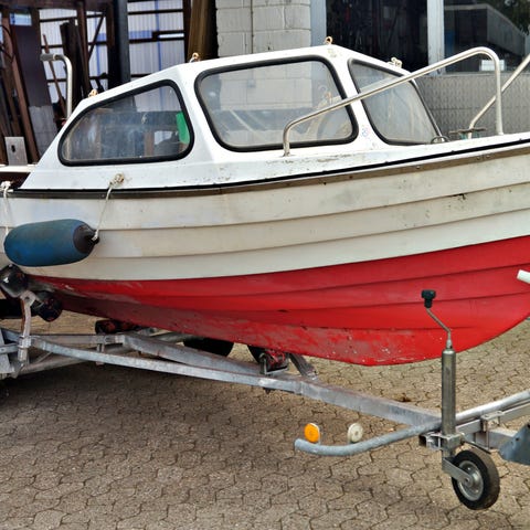 Rigtig god træ jolle, med lille “skur” til ekkolod og batteri m.m.