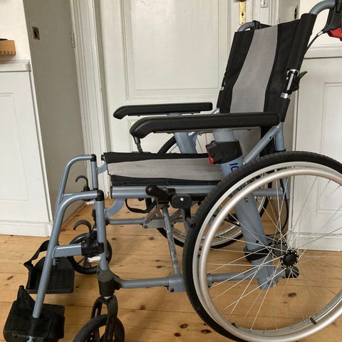 Vi har fået en elektrisk kørestol, så vi sælger nu vores Küschall Compact 2.0, som nok er en Rolls Royce blandt kørestole, men tag ikke vores ord for det – se https://www.invacare.dk/da/manuelle-koerestole/aktive-koerestole/kuschall-compact-2