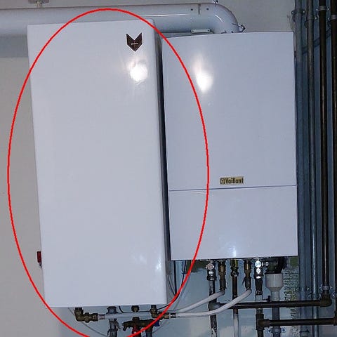 Vølund varmtvandsbeholder QM 100 til opvarmning med fjernvarme eller centralvarme/ gasfyr.