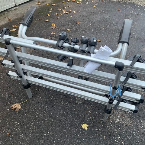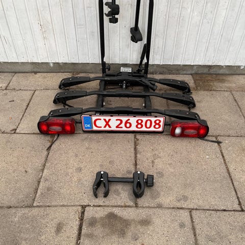 Uebler i21 cykelholder med 90 graders kip. Bagsmæk kan åbne. Brugt på 3 ferieture på VW California. 3 nøgler og manual medfølger.