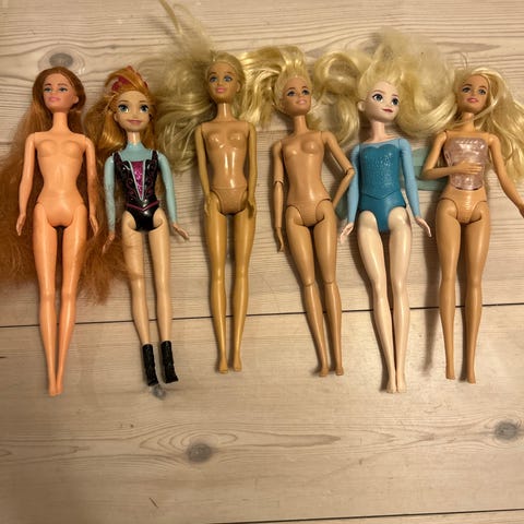 Barbie dukker sæt bestående af 5 forskellige dukker, herunder både mandlige og kvindelige figurer. Dukkerne har forskellige outfits og frisurer, der varierer i farve og stil. Sættet kan anvendes til leg og samling.