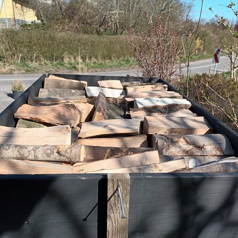 1 m3 bæredygtigt lufttørret fra Sverige. Birk eller blandet løv. Frit leveret.