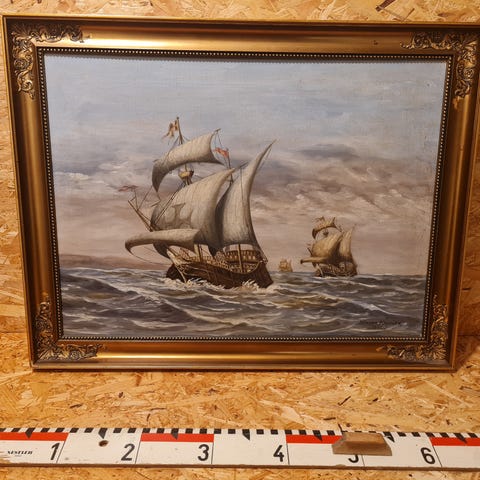 Maleri af skib, med svensk flag.