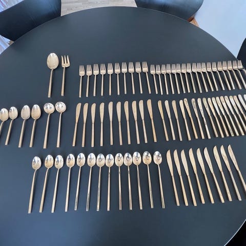 Bestikdele i bronze fra serien Scanline designet af Sigvard Bernadotte. Fremstår i pæn stand.