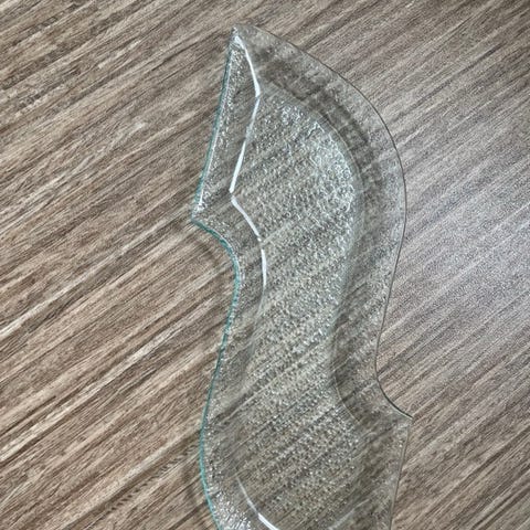 Glas, 6 stk Middagstallerkener/kage og serveringsfade med en hvid mat stribe