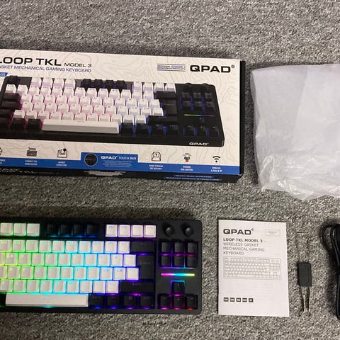 QPAD MK-75 tastatur med mekaniske taster og RGB-belysning. Designet til gaming og generel brug.
