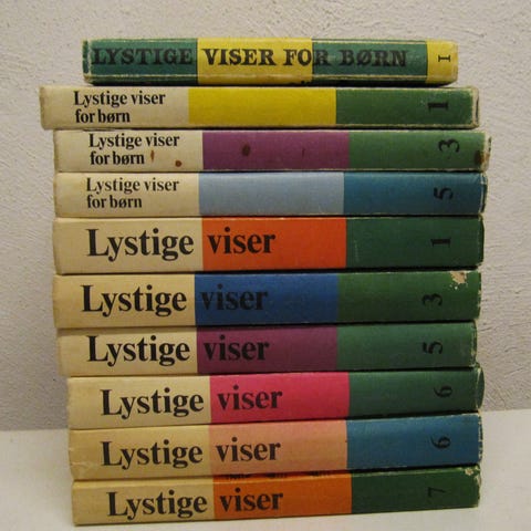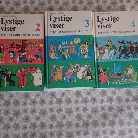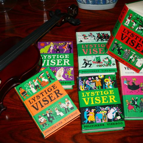 Politikens Lystige Viser 1 - 2. 1. udgave 1997. Hvert bind indeholder 256 sider. Med noder og righoldigt illustreret. Format 17 * 25 cm.