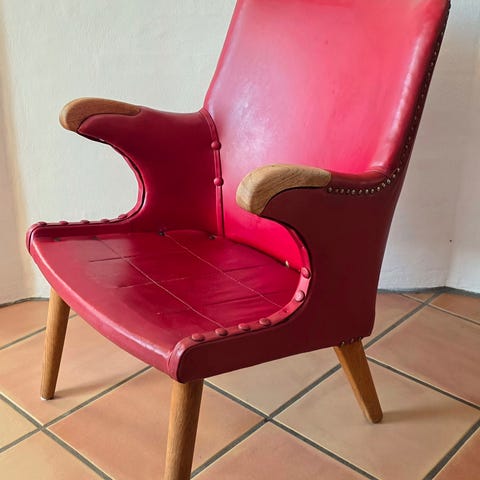 Original lænestol fra dansk snedkermester 1940erne i mørkerød patineret læder.