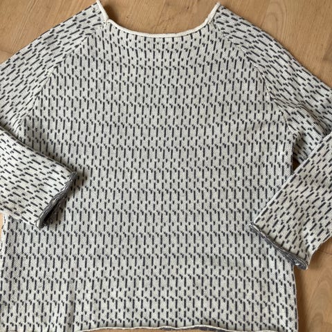 Bluse, str. 40, Hvid, Næsten som ny, Strikket bluse, hvid, fra 80-erne, fremstår som ny. Længde fra skulder og ned 54 cm. Brystvidde målt under ærmegab 52 cm ca.