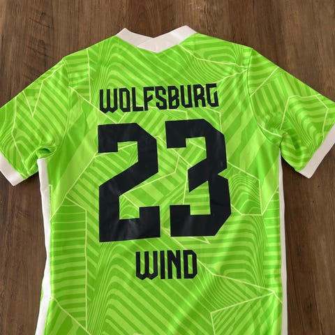 Wolf Fodboldtrøje i størrelse XL, rød farve. Trøjen er designet til fodbold og har flere trykte logoer og numre på både for- og bagside.