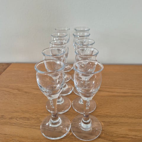 6 snapseglas og 1 shotglas af Holmegaard’s serie Ideelle. De er brugt 1-2 gange og ellers stået i skabet (shotglasset er ubrugt).