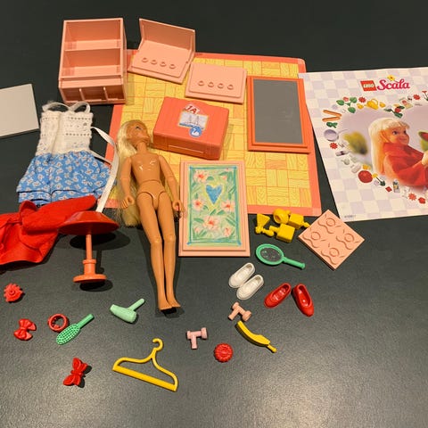 Flot "Homemaker" sæt fra 1978. Komplet hvad angår klodser. Klistermærker påført. Mangler to klistermærker: Bog og et kulørt blad.