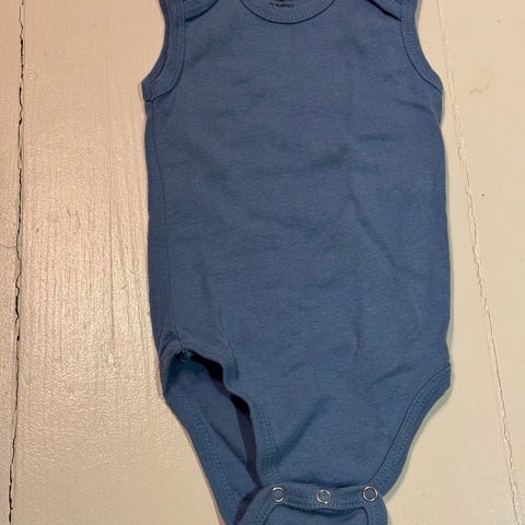 Kortærmet body med selebukser, ca str. 6 måneder.