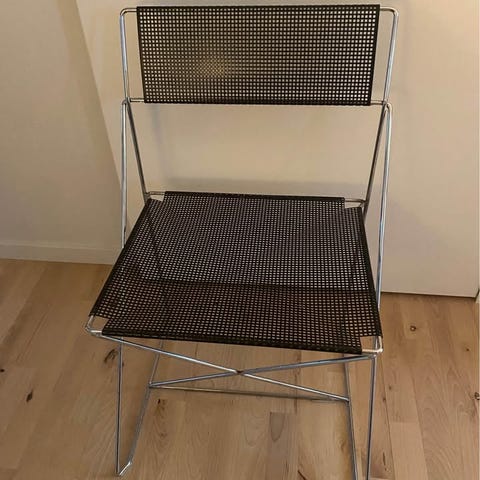 4 stk. metalstole i stil med x-line stolen af Niels Jørgen Haugesen. Nylakerede i RAL-farven 5003 Safir blå.