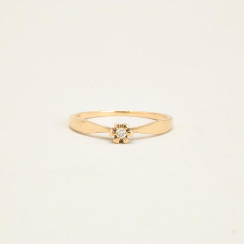 Solitairering i 14K guld med en diamant (0.03 ct), Str. 55,