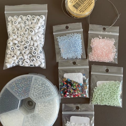 Jeg sælger følgende perler. Vi havde købt en masse ind da vi skulle til Taylor Swift koncert og der er en del tilbage. Både store og små perler, perlebogstaver og 4 forskellige stk. tråd.