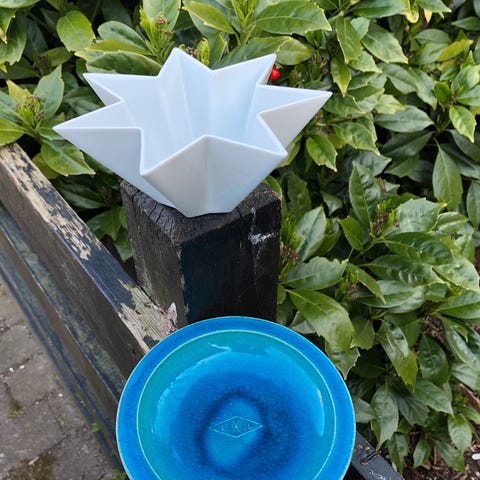 Kähler Bozza keramik skål i lyseblå. Designet af Søren Thygesen. 17 cm høj, 30 cm i diameter.
