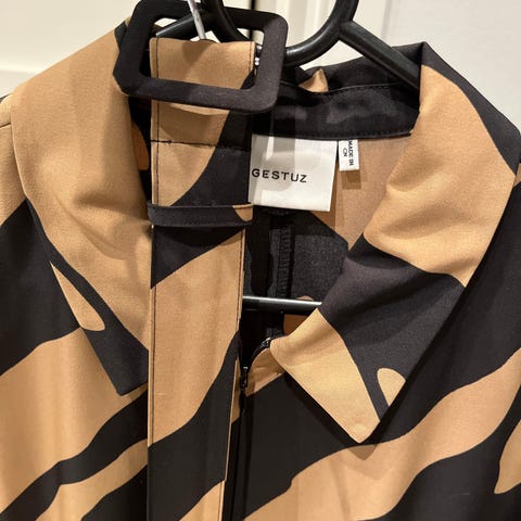 Super fin Gestuz slåom kjole i orange leopard print. Str. 36. Kjolen er i perfekt stand, brugt få gange og fra ikke-ryger hjem. Farve som foto 2. Sender gerne og leverer i Skive ved lejlighed.
