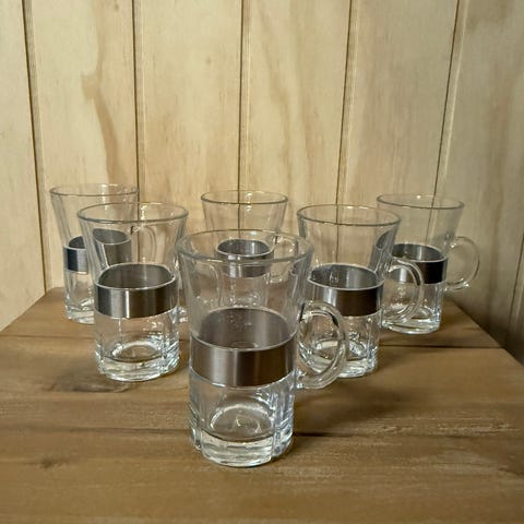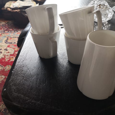 Rosendahl kaffekrus i rosa. Krusene er designet til at kunne bruges til varme drikke. Materiale og størrelse er ikke angivet.