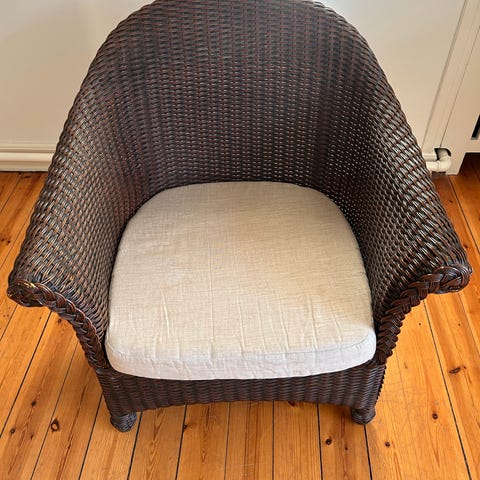 Kurvestol som man siddet godt i. Fra hjem uden husdyr og røg.