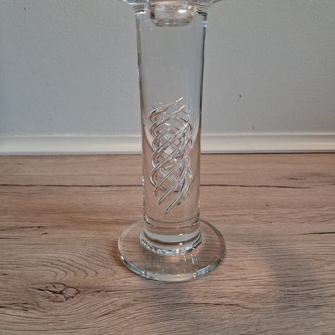 Lysestager i lys blå og smoke fra Holmegård designet af Per Lutken. Måler 4,5 cm x 4,5 cm.