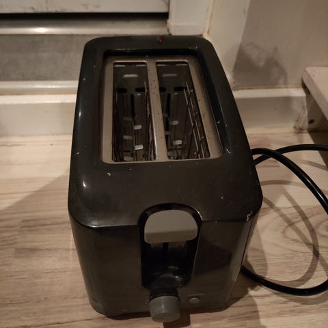 Køkkenchef brødrister med kapacitet til 2 skiver. Farve: sort. Materiale: ukendt. Velegnet til almindelig toast og brød.